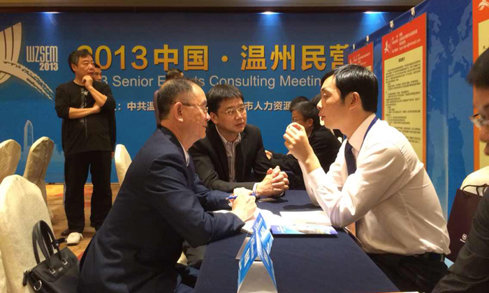 在市區(qū)喜來登酒店4樓的“2013中國溫州民營企業(yè)高層次人才洽談會”現(xiàn)場,130多位海外人才在94個展位前入座,而展位背后的展板上均有該海外人才的名字,以及他們所掌握的科研技術(shù)及科研項目的相關(guān)介紹。400多家溫州民營企業(yè)的相關(guān)人士發(fā)現(xiàn)感興趣的項目便可與海外人才進行洽談?,F(xiàn)場不時出現(xiàn)溫州本土民營企業(yè)與海外高層次人才“一拍即合”的情況。