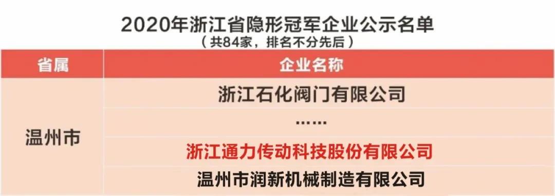 近日,浙江省經(jīng)信廳正式公布了2020年浙江省“隱形冠軍”企業(yè)名單,全省共有86家企業(yè)入圍,最終84家成功獲評(píng),通力成功上榜“隱形冠軍”企業(yè)。