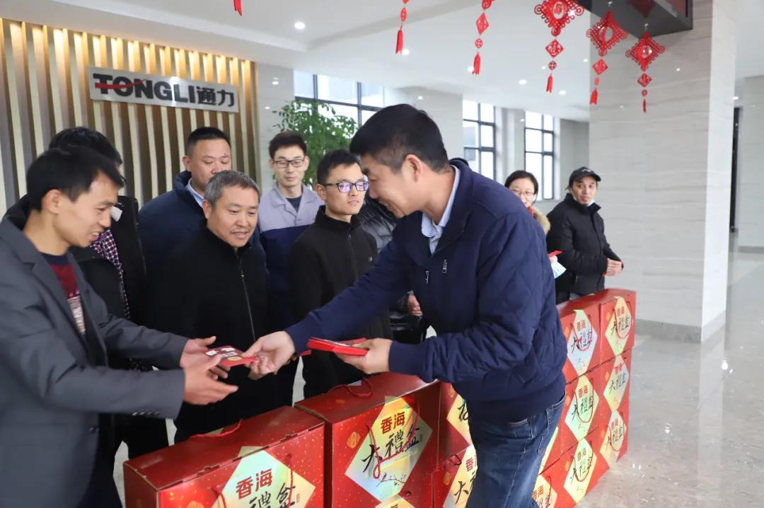 2月8日(臘月二十七),為響應(yīng)國家鼓勵(lì)企業(yè)職工就地過年的號召,為給予今年留在瑞安就地過年的通力員工新年祝福和溫暖,通力黨支部、工會(huì)連同行政部特為通力留瑞就地過年的職工代表們送上新春大禮包,祝愿員工們新春愉快。公司黨支部書記項(xiàng)建設(shè)代表公司向員工們一一送上禮包。