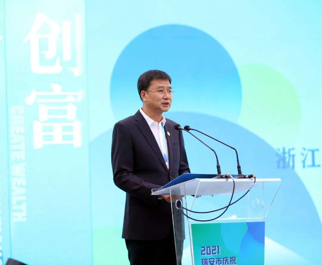 10月28日,2021瑞安市慶?!懊駹I企業(yè)家節(jié)”大會在瑞安中塘河河畔隆重舉行,瑞安市政協(xié)副主席、市工商聯(lián)主席、通力科技董事長項(xiàng)獻(xiàn)忠應(yīng)邀出席大會,并作為企業(yè)家代表發(fā)言。