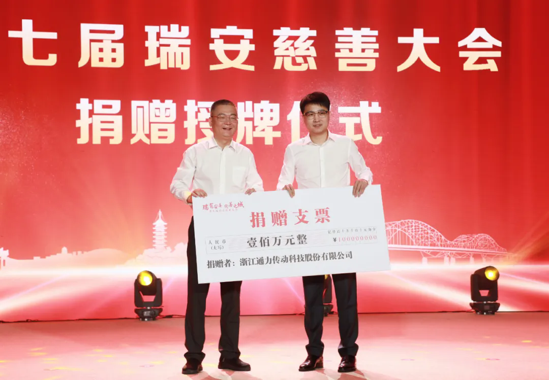 為合力打造共同富裕示范區(qū)縣域標桿,響應瑞安市委市府號召,通力科技總經(jīng)理項純堅代表通力科技向大會捐贈100萬元。