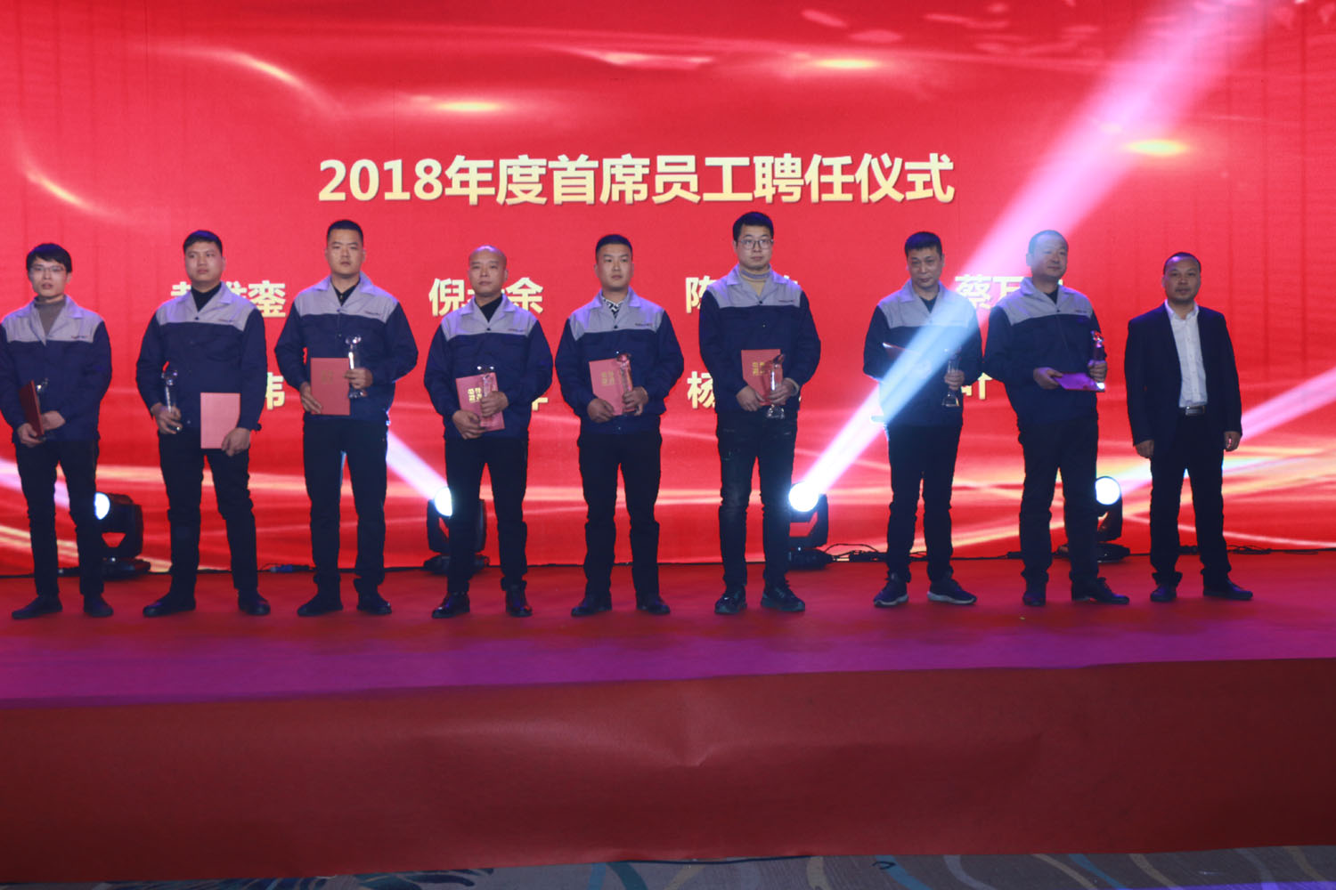 晚會對年度優(yōu)秀供應商、優(yōu)秀員工、優(yōu)秀共產(chǎn)黨員和銷售冠軍進行了表彰;聘任了2018年度15位員工為”首席員工”并頒發(fā)證書;首席員工代表徐崇燦 ,優(yōu)秀員工代表胡廣兵做了典型發(fā)言。